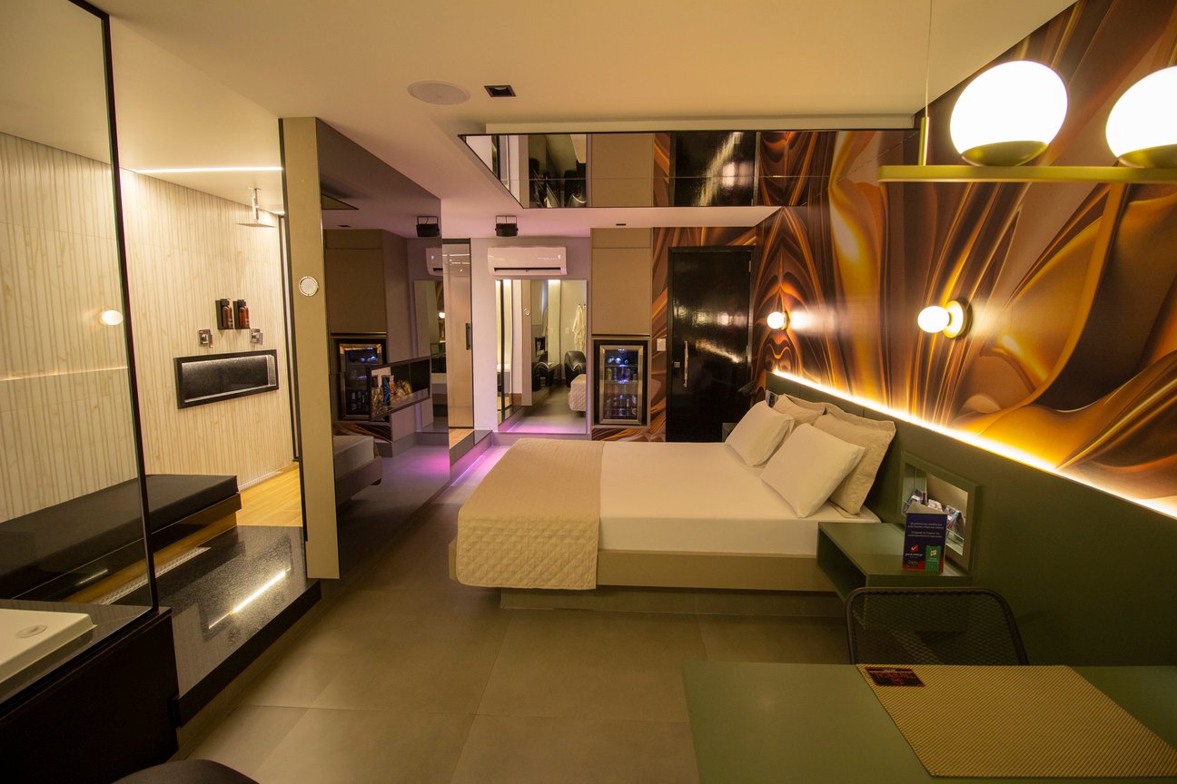 Surpreendente, sofisticada e totalmente tecnológica, a Suíte Dots foi criada para transformar cada momento em uma experiência memorável. Com automação por voz ou tablet, você controla luzes, som e ambiente com facilidade, criando o clima ideal para relaxar ou se entregar ao prazer.